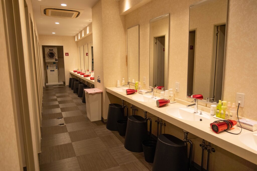 The common area for personal use is spacious and well-equipped, featuring changing rooms, showers, and toilets. You’ll find everything you need, including hair dryers, toothbrushes with toothpaste, skincare products, shampoo, conditioner, and soap. There’s no need to bring your own toiletries, as the hotel has prepared everything for you.