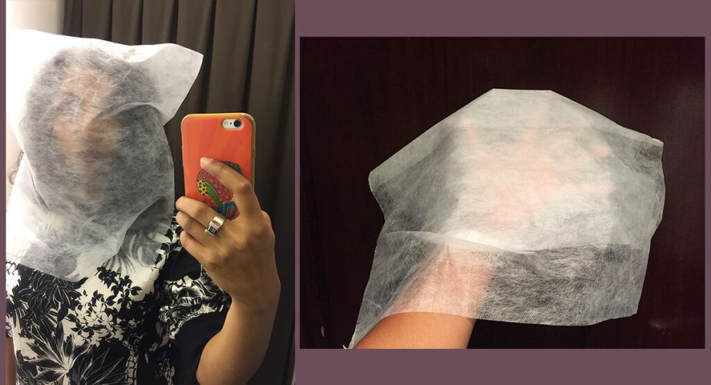These are face covers that prevent new clothes from getting stained with makeup like foundation and lipsticks. All you have to do is put it over your head before you try your clothes. Personally I am extremely thankful for these especially when trying light-colored outfits.