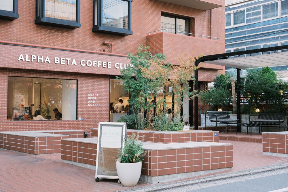 ALPHA BETA COFFEE CLUB is a trendy cafe where you can enjoy expertly brewed coffee made from beans roasted in-house, along with a selection of craft beers. The cafe has a minimalist design with striking red-brown brick walls, creating a warm yet modern ambiance.