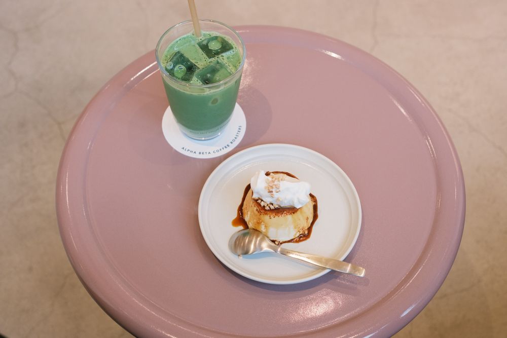 In addition to their signature coffee, ALPHA BETA COFFEE CLUB also offers a variety of other beverages like matcha green tea, as well as delightful desserts such as their silky-smooth pudding. The pudding is soft, not overly sweet, and pairs beautifully with either green tea or coffee, making it a must-try treat.