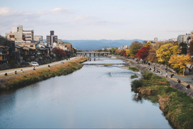 The area around Shijo Bridge is one of the liveliest parts of central Kyoto. On a sunny day, many people love sitting along the Kamo River to enjoy the view.
